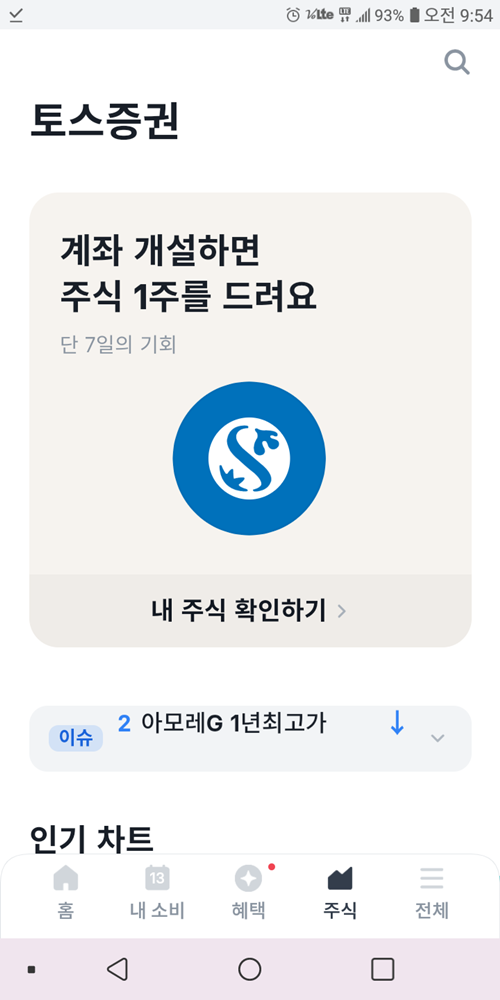 제목 : [토스증권 이벤트] 토스증권 계좌 개설 이벤트, 주식 1주 무료 인터파크 당첨~