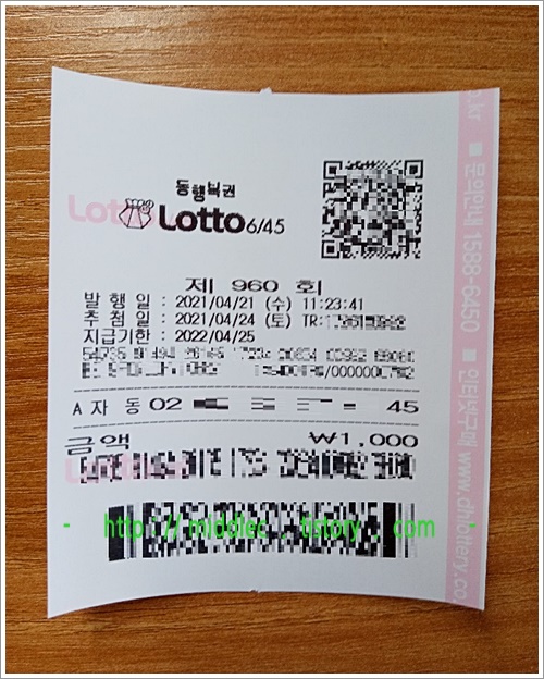 로또 960회 당첨금 지급기한일 : 2022년 4월 25일 월요일