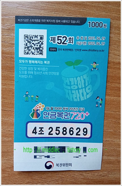 - 연금복권 52회 당첨번호 (2021년 4월 29일 추첨)3 -