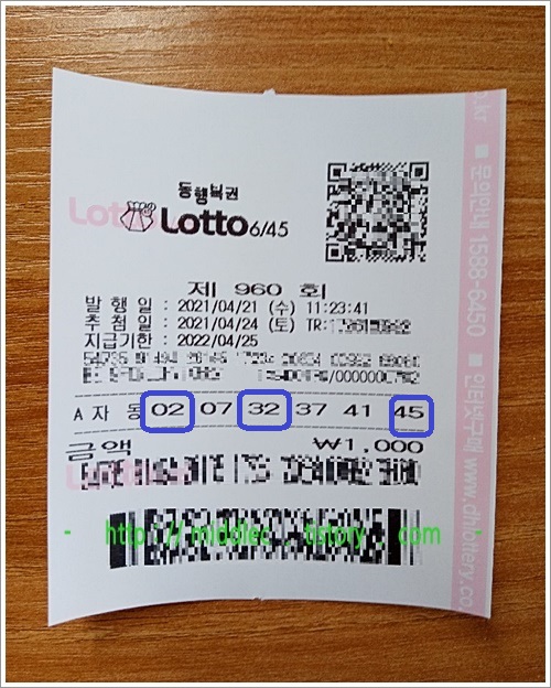 개인적으로는 아무쪼록 지난 주 5등 당첨에 이어, 이번 회차에서는 그보다 더 높은 등수에 당첨이 되었으면 좋겠네요. 천원의 기대가 꿈이 아닌 현실이 되길 희망하며~ 내일을 맞이해야겠습니다. ^^