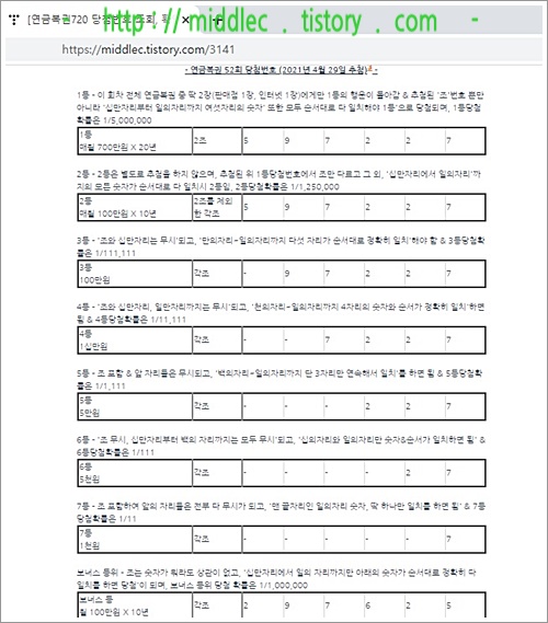 '연금복권 52회 당첨번호' 결과 확인 포스트 : https://middlec.tistory.com/3141