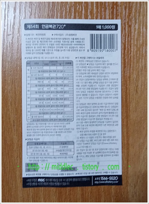 - '연금복권 54회' 복권 후면 이미지 -