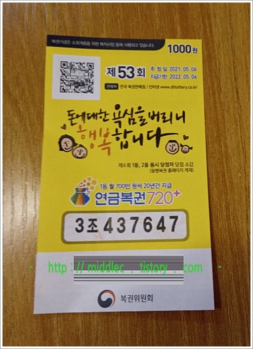 - 이미지 : 연금복권 53회 꽝 -