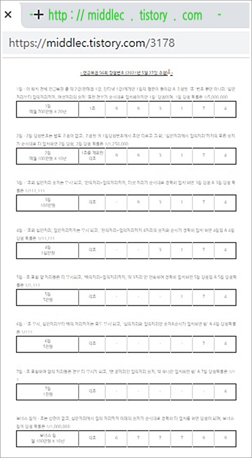 '연금복권 56회 당첨번호' 결과 확인 포스트 : https://middlec.tistory.com/3178