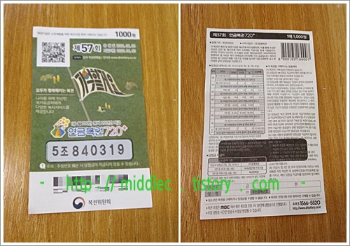 그러면 이 회차 '연금복권'을 구입하신 분들은 조금 전에 추첨 & 발표된 '연금복권 57회 당첨번호'를 확인해보시고요.