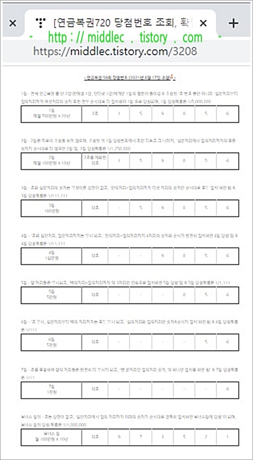 '연금복권 59회 당첨번호' 결과 확인 포스트 : https://middlec.tistory.com/3208