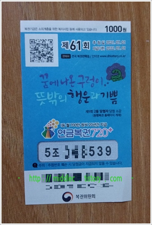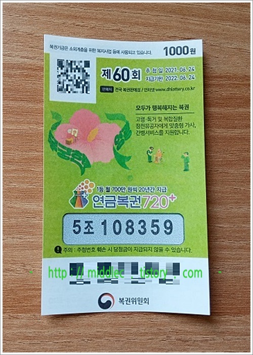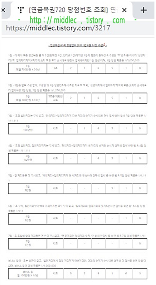 '연금복권 60회 당첨번호' 결과 확인 포스트 : https://middlec.tistory.com/3217
