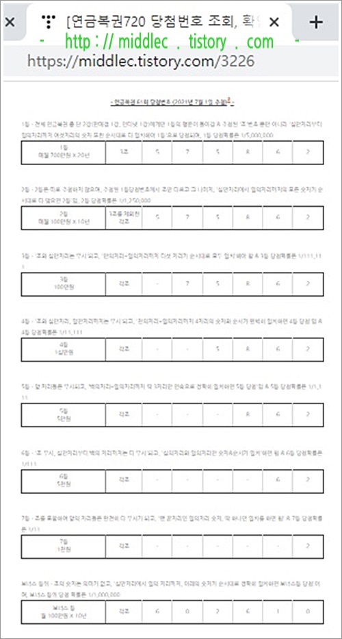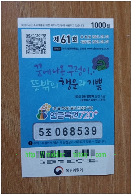 '61회 연금복권 당첨번호' 결과 확인 포스트 : https://middlec.tistory.com/3226