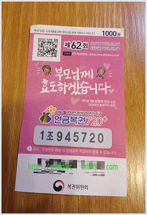 그럼, 이번 회차 '연금복권'을 소지하고 계신 분들은 조금 전에 MBC를 통해서 추첨 & 발표된 '연금복권 62회 당첨번호'를 확인해보시고요.