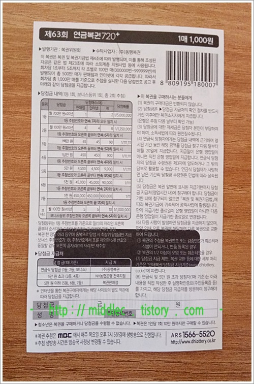 만약, 그 결과가 '꽝' 혹은 '당첨이긴 하나 바람만큼의 등수는 아니다' 하는 경우라면,, 별 수 없이 또 다음 연금복권 추첨분인 '연금복권 63회'에 희망을 걸어보아야겠습니다.