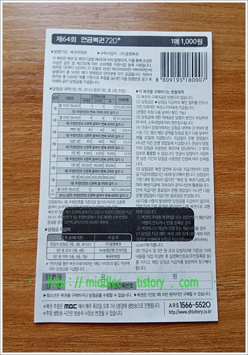 제가 산 '63회 연금복권'의 결과는 포스트의 서두에서도 적었듯이 '꽝'이었습니다.
