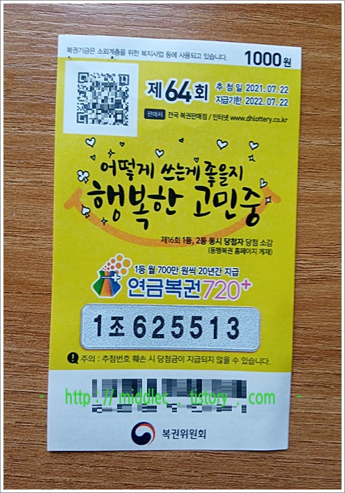 - 연금복권 64회 당첨번호 (2021년 7월 22일 추첨)3 -
