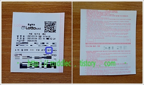 - '로또 973회'의 1등 당첨번호는 '22 & 26 & 31 & 37 & 41 & 42'이고, 2등보너스 번호는 '24'였는데요. 제가 구입한 '로또 973회'에는 이 회차 로또당첨번호 중 '37'번 딱 하나만 들어있어서 결과적으로 '꽝'이 되고 말았습니다. [본문으로]