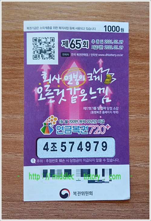 '연금복권 65회 당첨번호' 결과 확인 포스트 : https://middlec.tistory.com/3262