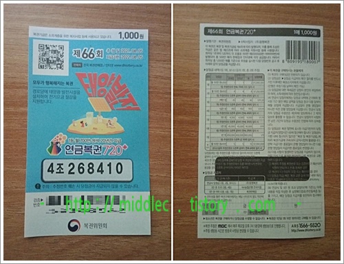 그러면 이번 회차 '연금복권'을 소지하고 계신 분은 좀전에 추첨 & 발표된 '연금복권 66회 당첨번호'를 확인해보시고요.