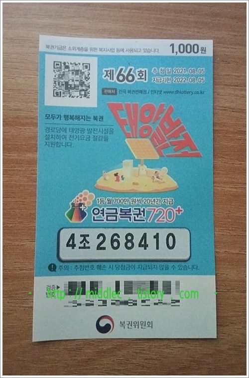 - 연금복권 66회 당첨번호 (2021년 8월 5일 추첨)3 -
