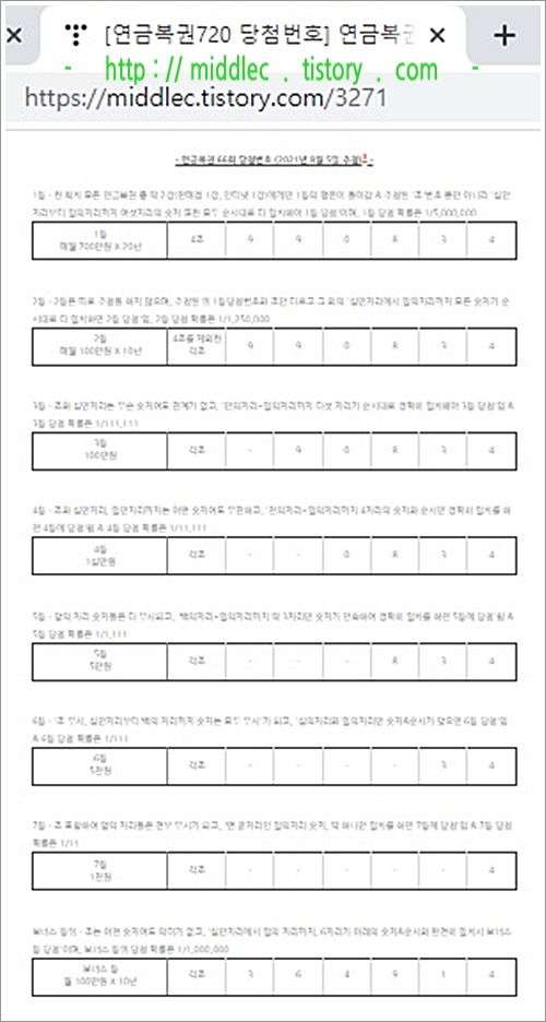 '연금복권 66회 당첨번호' 결과 확인 포스트 : https://middlec.tistory.com/3271