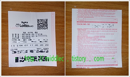 만약, 이 회차 로또복권의 결과가 좋지 않았다면, 다음 주 추첨분인 '로또 979회'를 미리 구입해뒀다가 '로또 979회 당첨번호'와 일치하기를 기대해보아야겠습니다. ^^