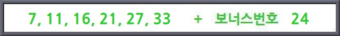 로또 979회 1등 당첨번호 : 7 & 11 & 16 & 21 & 27 & 33