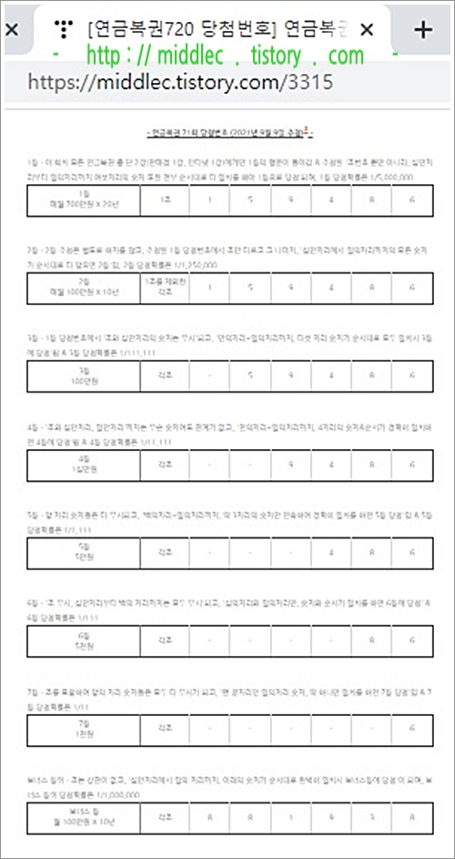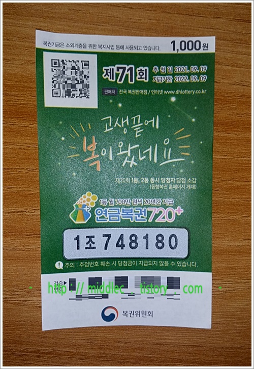 '연금복권 71회 당첨번호' 결과 확인 포스트 : https://middlec.tistory.com/3315
