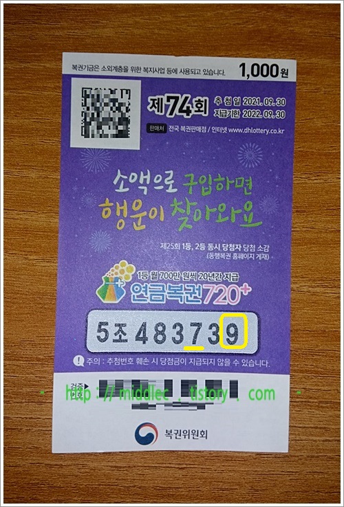 '연금복권 74회 당첨번호' 결과 확인 포스트 : https://middlec.tistory.com/3342
