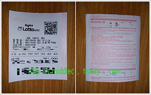 - 로또 983회 당첨번호 (2021년 10월 2일 추첨)2-