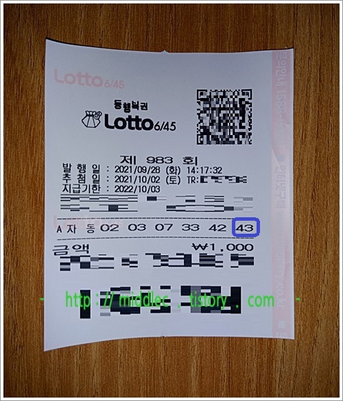 '984회차 로또 복권'을 소지하고 계신다면, 토요일 저녁에 '로또 당첨' 여부를 꼭 확인해보세요. ^^