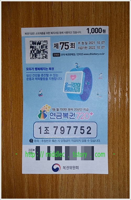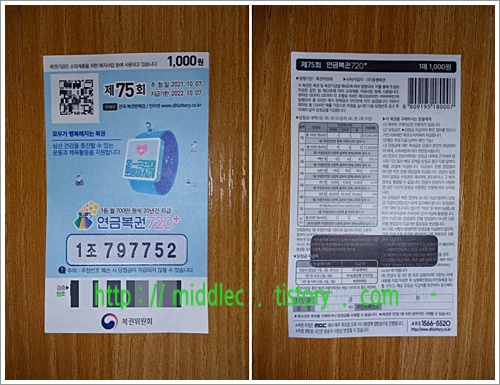 - 연금복권 75회 당첨번호 (2021년 10월 7일 추첨)3 -