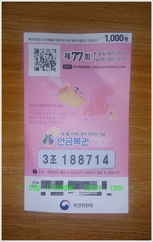- 연금복권 77회 당첨번호 (2021년 10월 21일 추첨)3 -