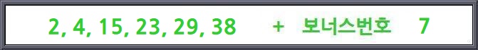 로또 987회 1등 당첨번호 : 2 & 4 & 15 & 23 & 29 & 38