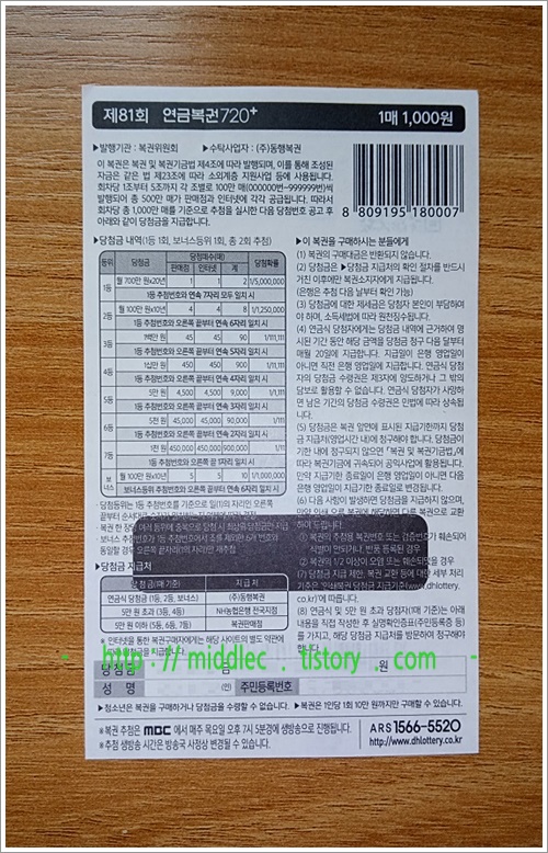 확인 결과가 '오늘 제 복권처럼 꽝이거나, 혹은, 당첨이긴 하나 바랐던만큼의 등수가 아닌...' 그런 경우라면, 어쩔 수 없이 내주의 연금복권 추첨 회차인 '연금복권 81회'에 또 좀 기대를 걸어보아야 할 것 같습니다. ^^