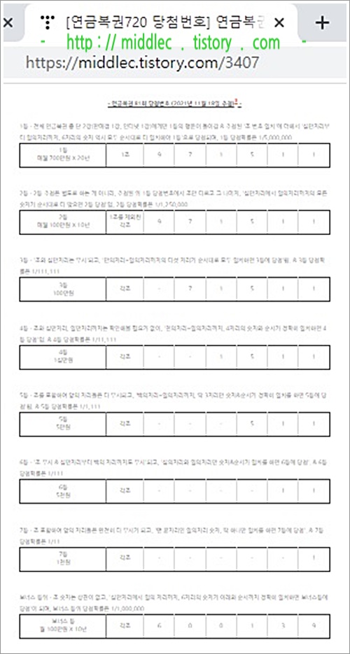 '연금복권 81회 당첨번호' 결과 확인 포스트 : https://middlec.tistory.com/3407