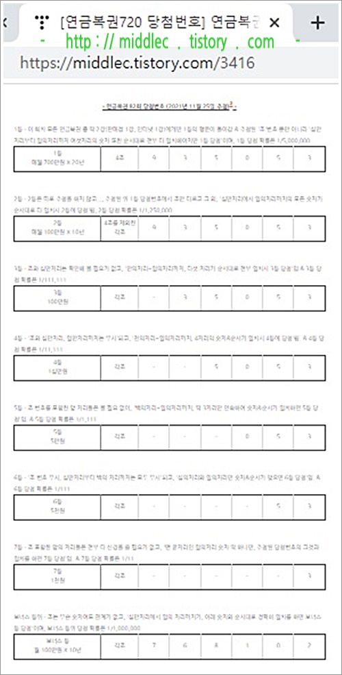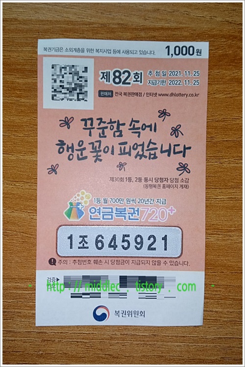 '연금복권 82회 당첨번호' 결과 확인 포스트 : https://middlec.tistory.com/3416