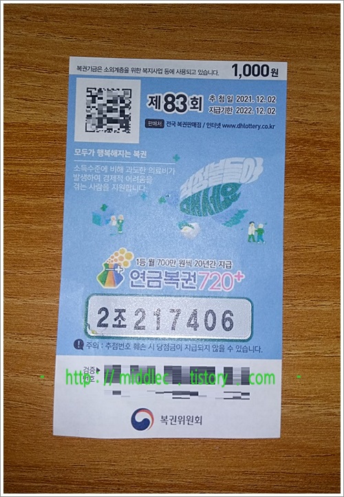 '연금복권 83회 당첨번호' 결과 확인 포스트 : https://middlec.tistory.com/3425