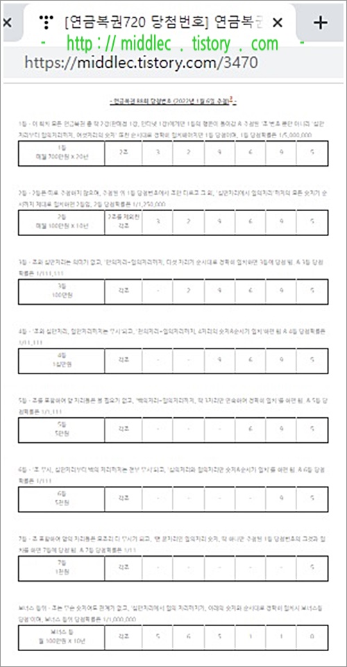 '연금복권 88회 당첨번호' 결과 확인 포스트 : https://middlec.tistory.com/3470