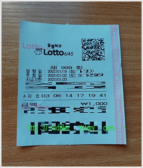 혹시, 이 회차 '로또' 결과가 '제 복권처럼 꽝, 혹은, 낮은 등수 당첨'이라면, 별 수 없이 또 다음 추첨 회차인 '로또 1000회'를 미리 구입해뒀다가 내주 토요일에 추첨할 '로또 1000회 당첨번호'와 일치하기를 기대해봐야 할 것 같습니다. ^^
