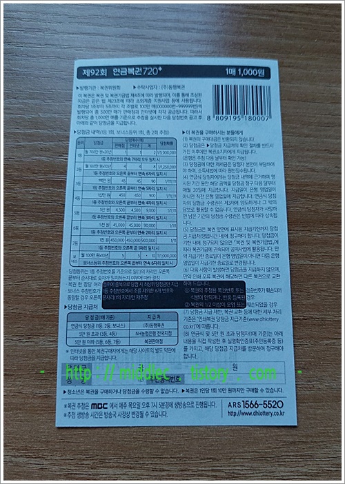 만약, 그 결과가 '꽝' 혹은 '오늘 제 복권과 같이, 당첨이긴 하나 바람만큼의 등수는 아닌...' 그런 경우라면, 별 수 없이 또 다음 연금복권 추첨 회차인 '연금복권 92회'에 기대를 좀 걸어보아야겠습니다.