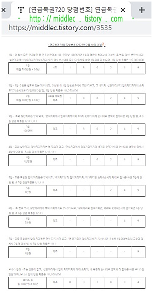 '연금복권 93회 당첨번호' 결과 확인 포스트 : https://middlec.tistory.com/3535