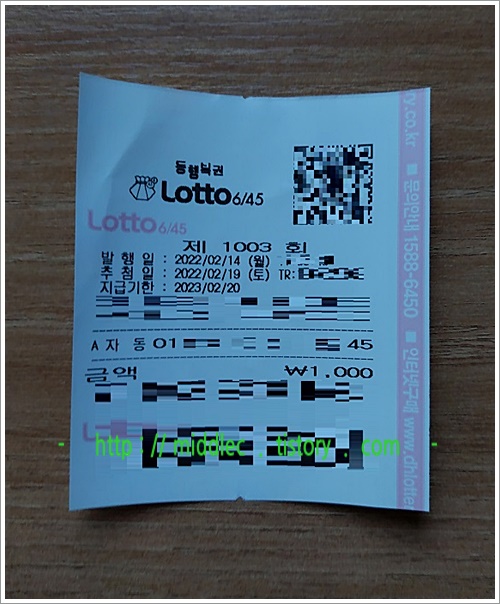 '1003회차 로또 복권'을 갖고 계신다면, 토요일 저녁에 '로또 당첨' 여부 확인하는 것, 꼭 기억하세요. ^^