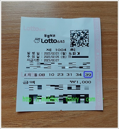 * '로또 1004회 당첨금' 결과 간략 안내 및 동행복권 로또 결과 포스트 주소 링크.