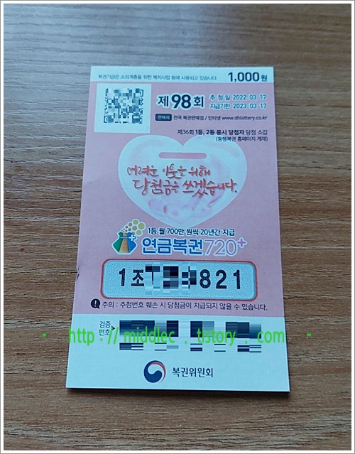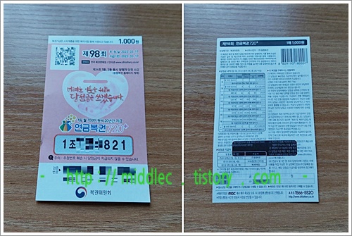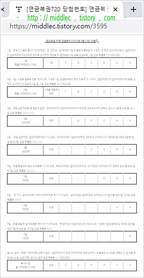 '연금복권 97회 당첨번호' 결과 확인 포스트 : https://middlec.tistory.com/3595