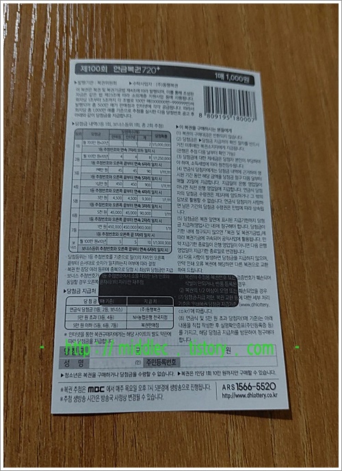 결과를 맞춰봤더니 위의 제 복권처럼 꽝이거나, 혹은, 당첨이기는 한데 당첨금이 기대에 못미치는 경우라면..., 하는 수 없이 또 다음 연금복권 추첨 회차인 '연금복권 100회'에 희망을 좀 걸어보아야 할 것 같습니다. ^^