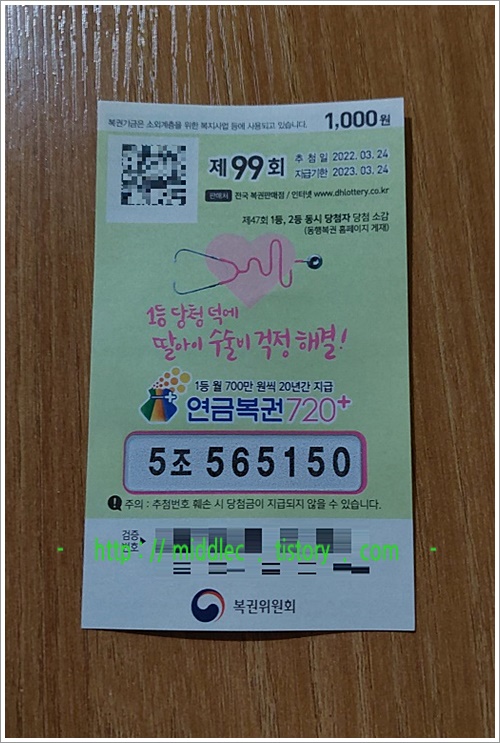 그럼, 이 회차 '연금복권'을 갖고 계신 분은 어제 저녁에 추첨 & 발표된 '연금복권 99회 당첨번호'를 확인해보시고요.