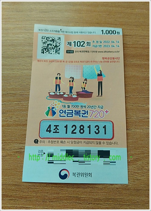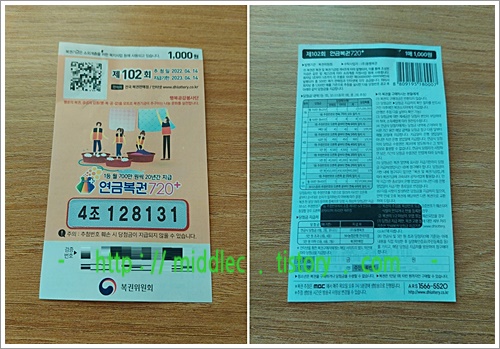 그러면 이번 회차 '연금복권'을 구입하신 분들은 어제 저녁에 MBC를 통해서 추첨 & 발표된 '연금복권 102회 당첨번호' 확인을 꼭 해보시고요.