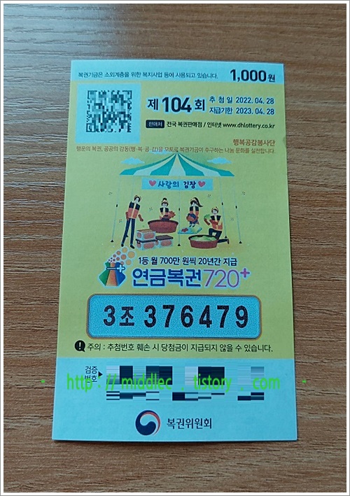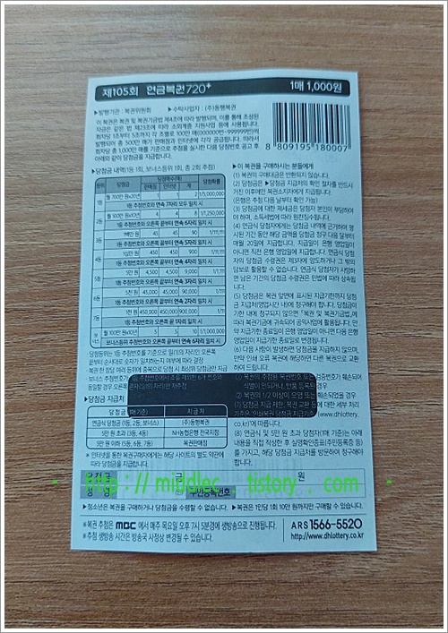 만약, 그 결과가 '꽝' 혹은 '당첨되긴 했으나 바람 만큼의 등수는 아니다' 하는 경우라면..,, 어쩔 수 없이 다음 연금복권 추첨분인 '연금복권 105회'에 또 좀 기대를 걸어봐야겠습니다.