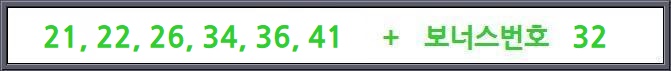 추첨된 6개의 공 번호는 '36, 21, 22, 41, 34, 26' 순이었고, 2등 보너스볼 번호는 '32'번이었는데요.