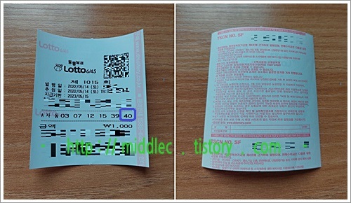 - '로또 1015회'의 1등 당첨번호는 '14 & 23 & 31 & 33 & 37 & 40'이고, 2등보너스 번호는 '44'였는데요. 제가 구입한 '로또 1015회'에는 이 회차 로또당첨번호 중 '40'번 딱 하나만 들어있어서 결과적으로 '꽝'이 되고 말았습니다. [본문으로]