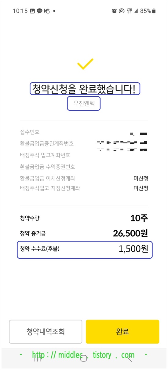 저는 균등 배정만 노리고, 최소 청약신청수량인 딱 10주3를 신청했었는데요.