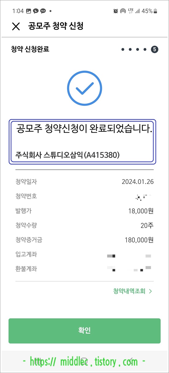 저는 최소 청약수량인 20주1를 신청했는데요.