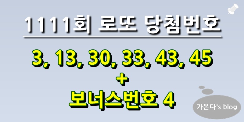 제목 : [회차별 로또 당첨번호, 조회, 확인] 로또 1111회 당첨번호, 1111회 로또 당첨번호, 1111회차 로또 당첨번호.